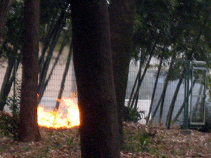 そんな雑木林の中では野焼きが。