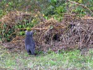 図書館の帰り道モッチリ体系のロシアンブルー?(の雑種??)が原っぱに。